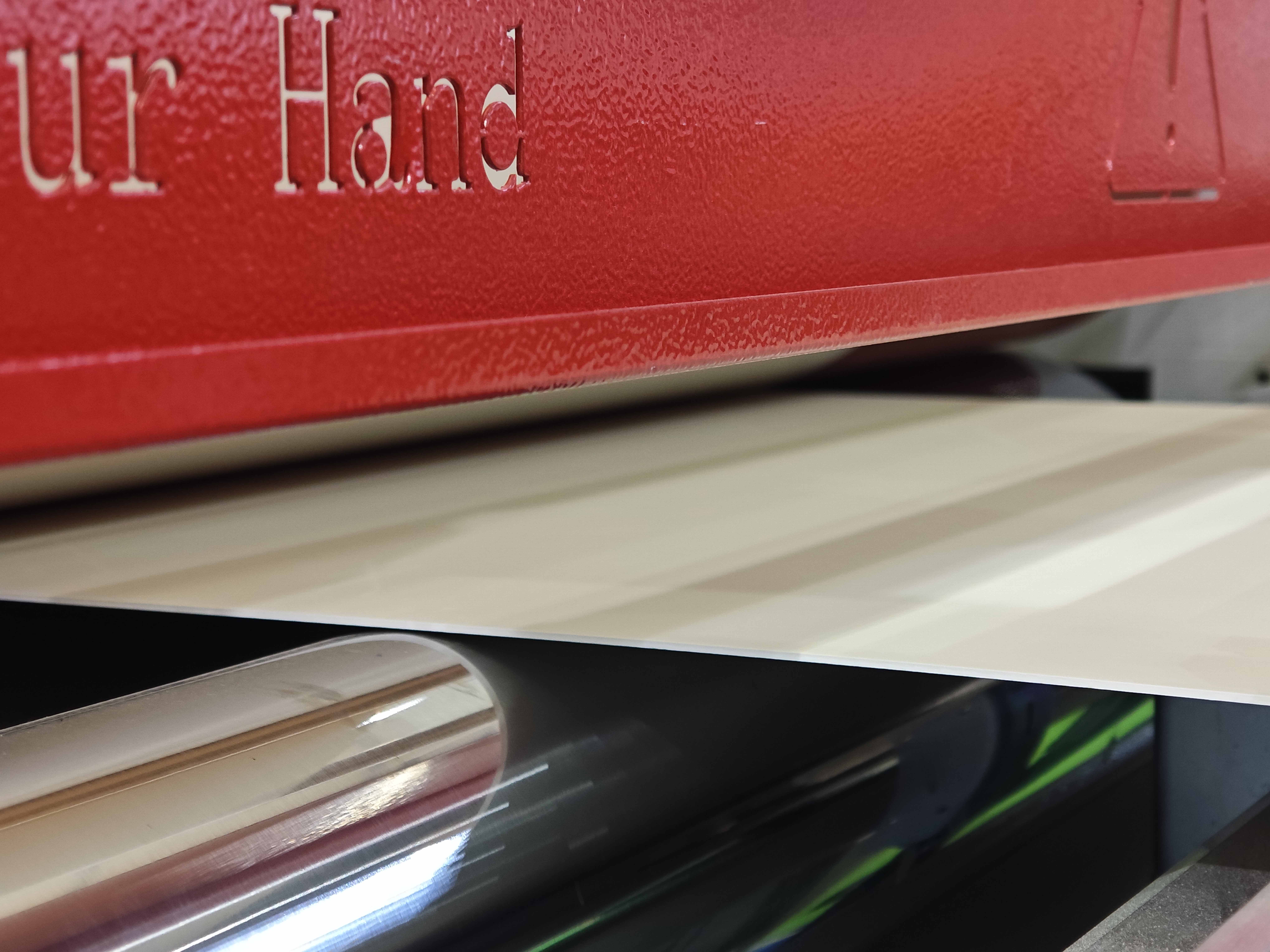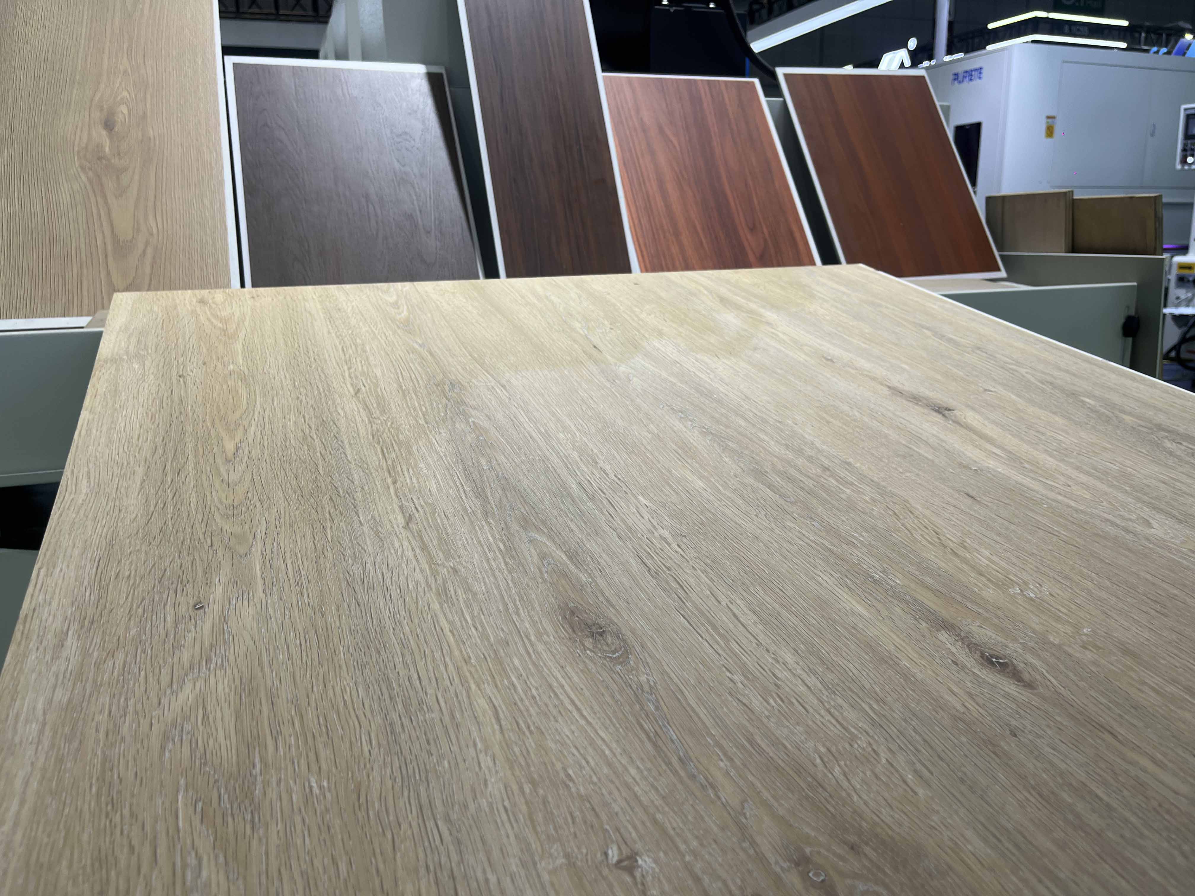 涂飾仿真同步壓紋生產(chǎn)線】: SPC地板、PET地板可以采用設(shè)備實現(xiàn)精準定位,較傳統(tǒng)工藝提升5倍,圖案和紋理的天然仿真還原度達90%以上,以極低的成本,復(fù)刻實木地板的質(zhì)感與紋理,產(chǎn)品品質(zhì)不變,減少設(shè)備的投入,快速占領(lǐng)市場。